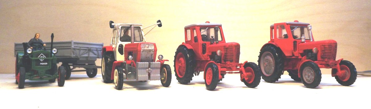 | Kleine Basteleien Teil 2Inhalt11.Traktoren verbessern 12. Pferdefuhrwerk 13. Der Weimarlader T 170 11. Traktoren verbessern Bei einem Belarus trennte ich die Tür heraus und klebte sie im geöffneten Zustand wieder ein. Außerdem erhielten alle Traktoren Nummernschilder.
